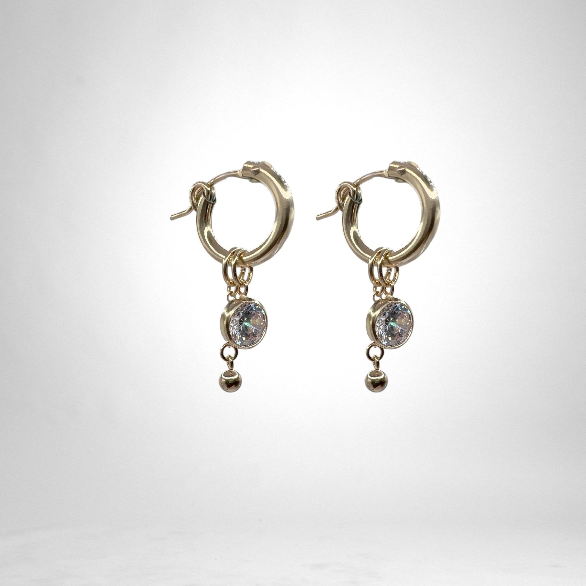 14ct. Goldfilled Ø13mm hoops with a chain and a cubic zirconia♡