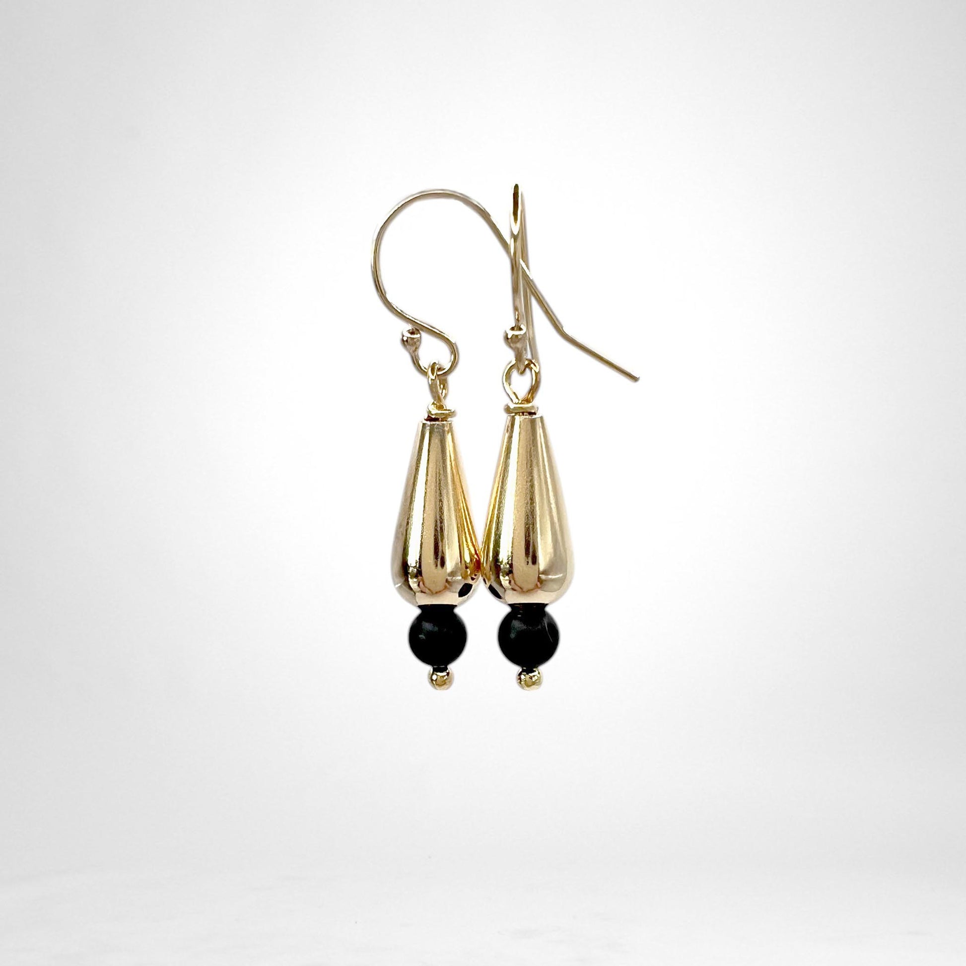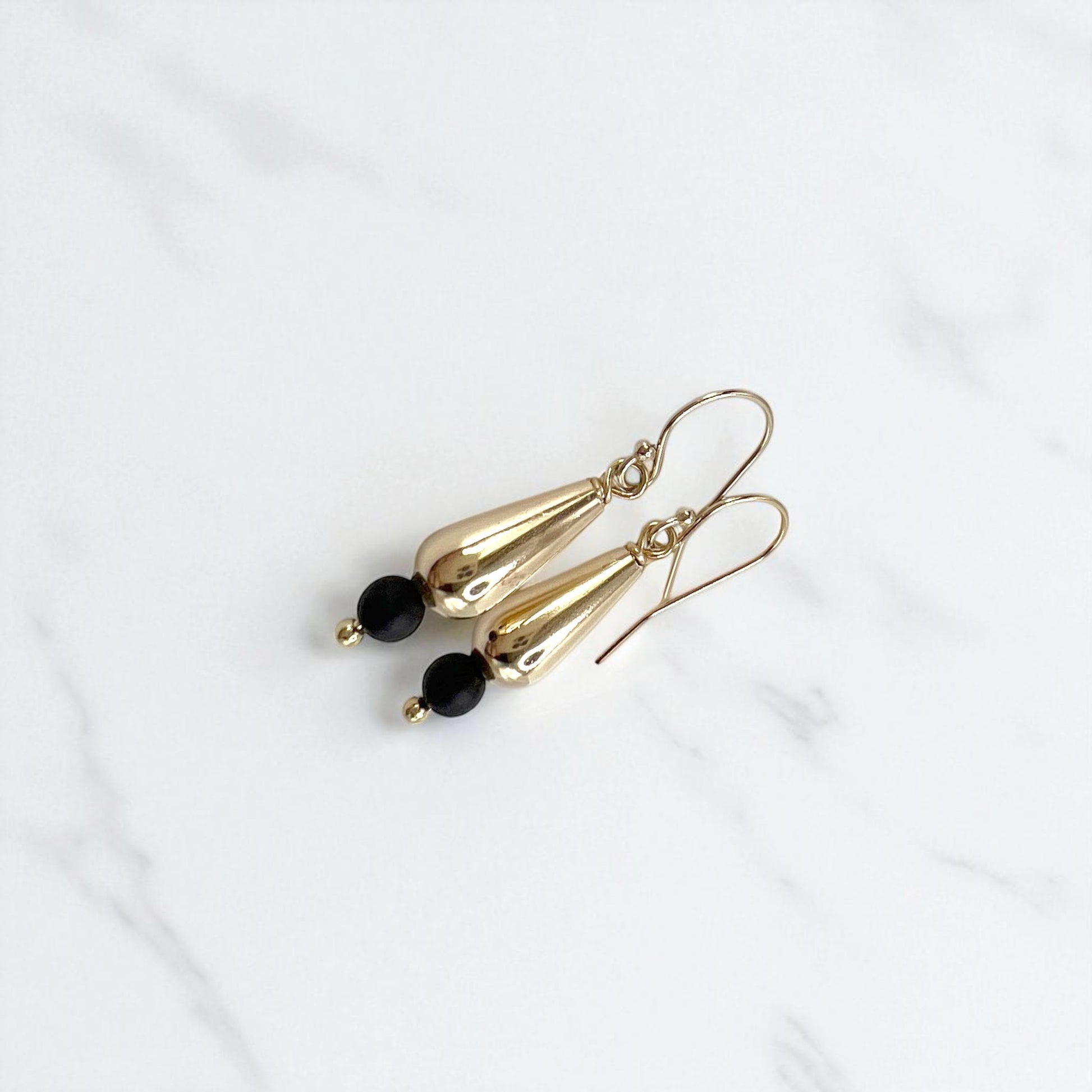 Gullitaðir lokkar með hraunsteinum, eyrna vírinn er 14ct gull fylltur.