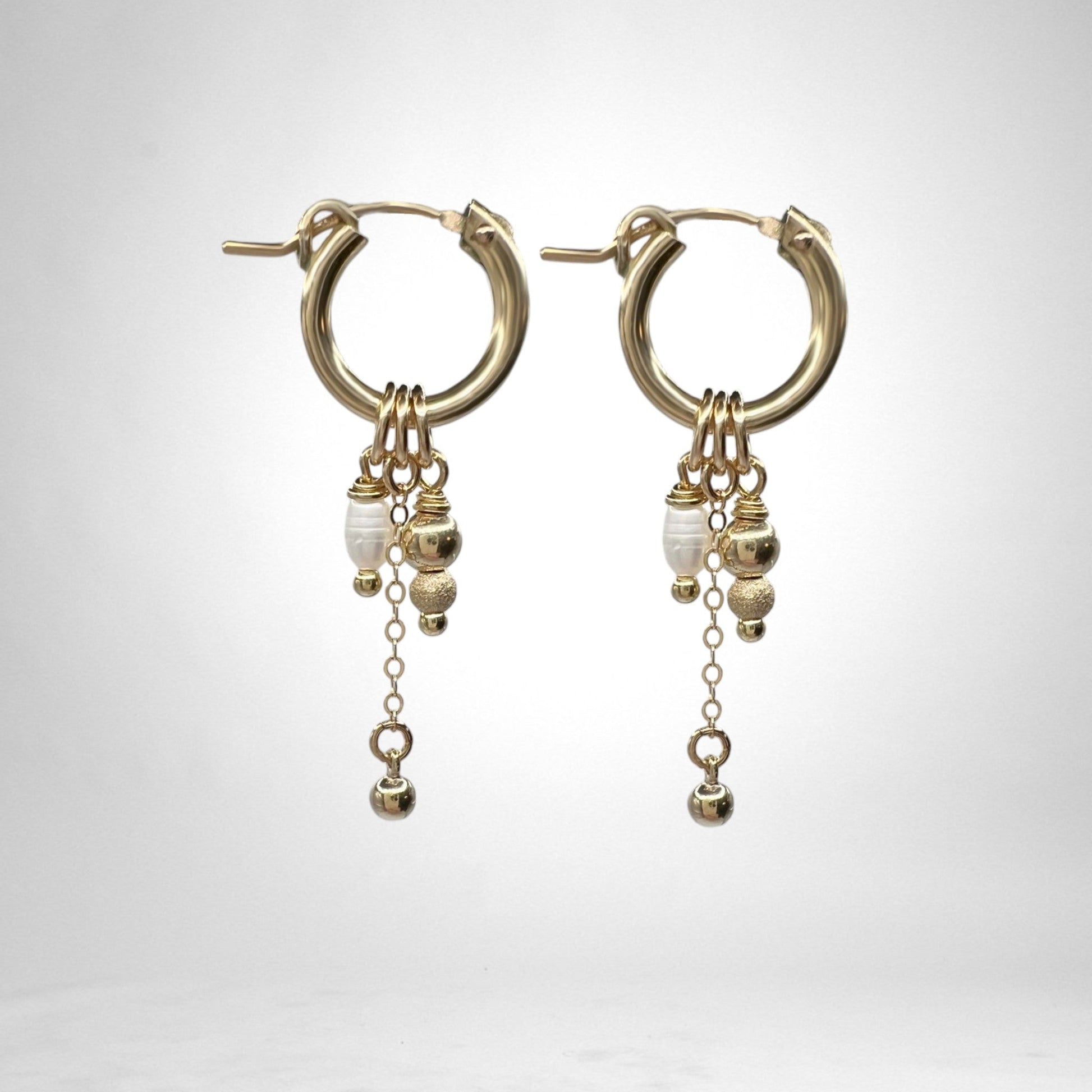 14k Gullfylltir Ø13mm hringlokkar með perlum, keðjum og kúlum♡