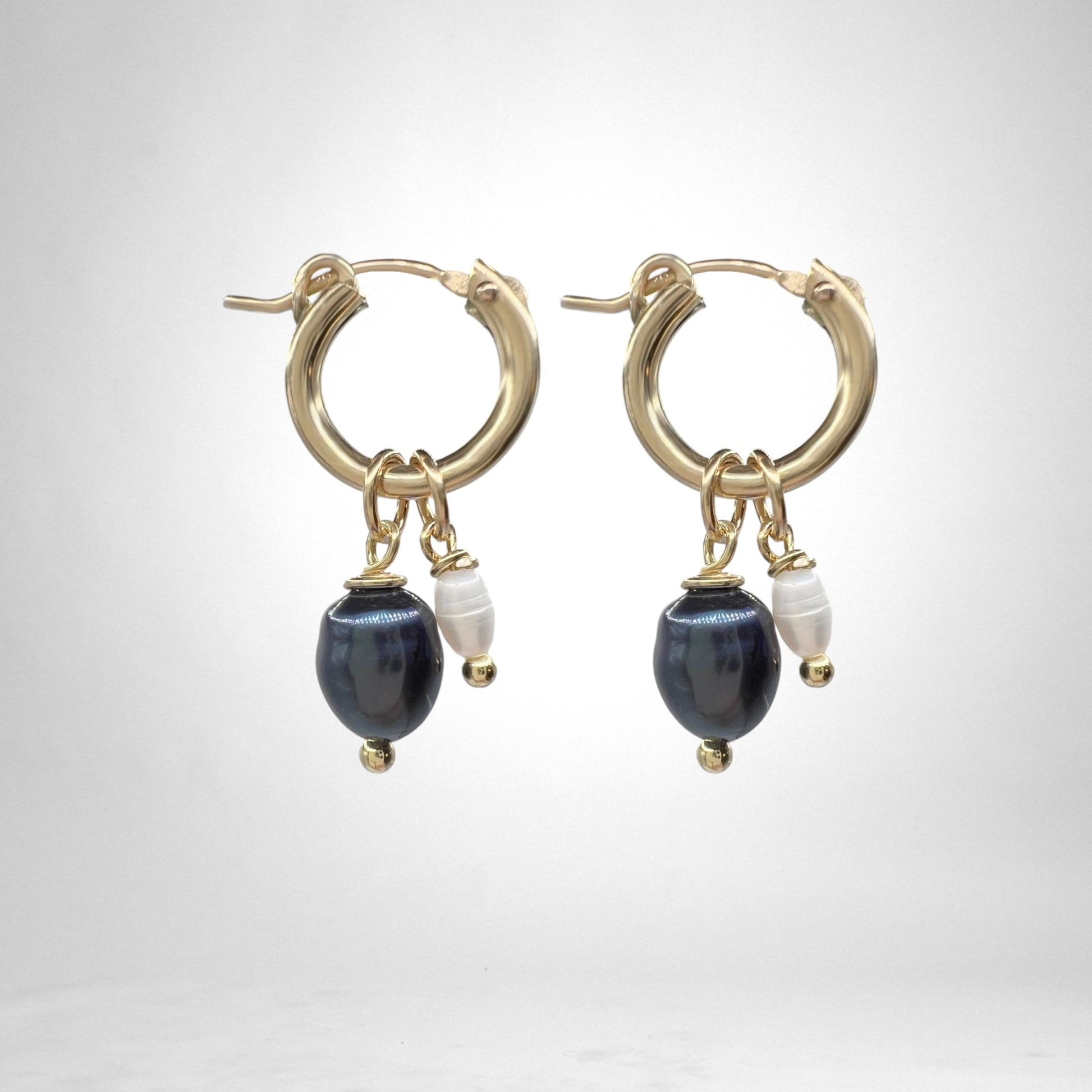 14k Gullfylltir Ø13mm hringlokkar með 7-8mm svörtum perlum & 3mm hvítum perlum♡